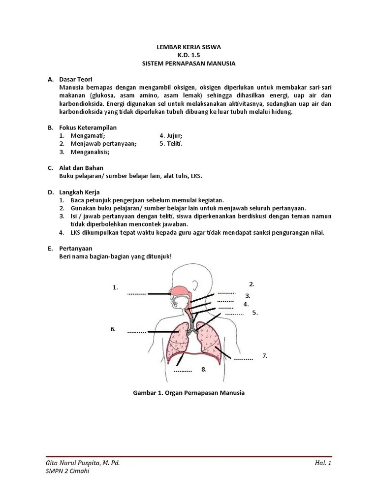 Soal ipa kelas 8 sistem pernapasan pada manusia beserta jawabannya. Berikut tentang pembahasan soal ipa kelas 8 smp halaman 78, sistem pernapasan manusia, organ penyusu, gangguan, cara menjaganya. 3.9 menganalisis sistem pernapasan pada manusia dan memahami gangguan pada . Sebutkan 2 fungsi kantong udara pada burung ! Sistem pernapasan bagian atas : Rongga hidung dan faring 2). Sistem pernapasan manusia merupakan salah satu materi biologi dengan cakupan materi yang cukup luas. Sistem pernapasan online worksheet for 8. Apa yang dimaksud dengan pleura ! 328.1 sistem pernapasan pada manusia. Ipa terpadu kelas viii smp. 2buku siswa ipa kelas viii merupakan panduan belajar siswa pada mata pelajaran ipa kelas viii di smp. You can do the exercises online or download the worksheet as pdf.