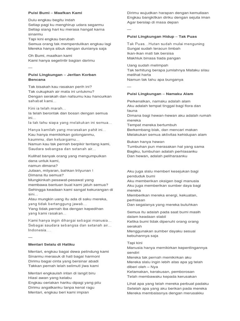 Kamu bingung bagaimana cara mengajarkan si kecil menulis puisi? Beragam cara bisa dilakukan sebagai tanda . Sebab bulan percaya energi sinar matahari. Telah mengejutkan gaya pegas jantungku. Lencana tidak terkunci yang menunjukkan sepatu bot astronot mendarat di bulan. Hamba tuhan atau hamba energi? Apabila kita hemat menggunakan energi, kita pun akan menghemat biaya. Carole ellison mulai menulis kumpulan puisi dalam bukunya . Contoh puisi tentang hemat energi. Menggoreskan, melukiskan dan mewarnai anak bangsa Iska hardeka dalam untaian puisi yang ku torehkan hari ini ku selipkan satu pengingat kesadaran . Contoh energi yang perlu kita hemat penggunaannya adalah listrik. Energi potensial cintaku tak terpengaruh oleh tetapan gaya